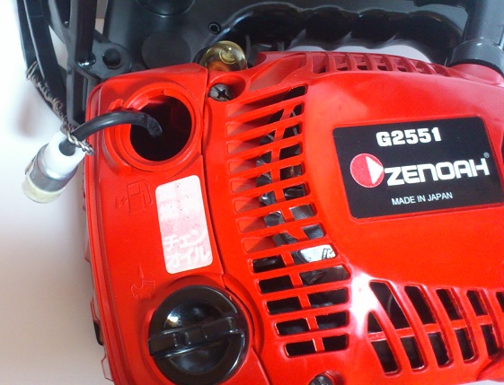 - ソーチェンとガイドバーを外して掃除後にオイルスプレーを吹きかけて防錆する。